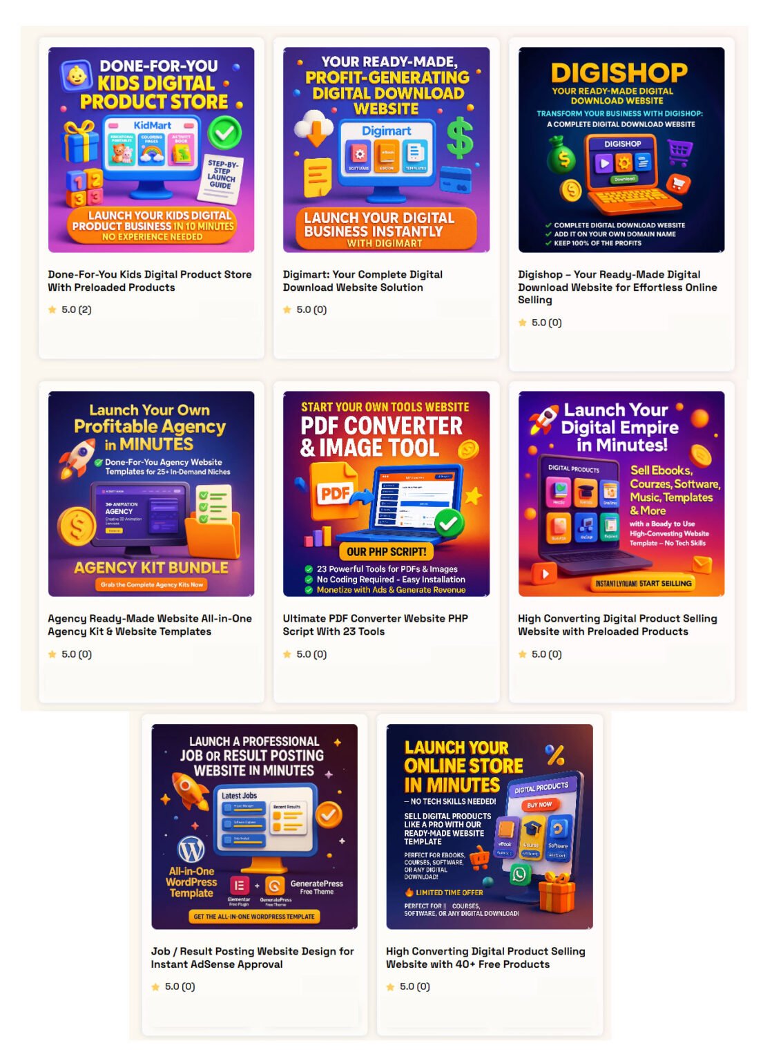 When you purchase this 8 Pack ready-made website, you’re not just getting a fully functional, professional site—you’re also unlocking an incredible bonus package: Get all digital products what you seen in demo site of 1 Million Digital Products across of so many GBs of downloads, 15+ high-demand niches, all with full resell rights.